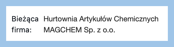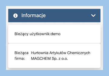 W sekcji "Informacje" znajdują się szczegóły dotyczące użytkownika oraz firmy, której dane są wyświetlane w systemie. Jest to przydatne gdy nasza praca odbywa się z kilkoma podmiotami gospodarczymi
