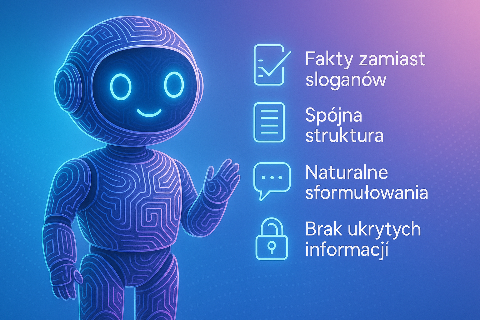 Jeśli w opisie zabraknie ważnych parametrów, klient może nie uzyskać satysfakcjonującej odpowiedzi. Z drugiej strony, jeśli opis będzie zbyt ogólny albo pełen pustych haseł („najlepszy na rynku”, „doskonała jakość”), system nie będzie w stanie poprawnie zrozumieć, czym produkt się różni od innych.